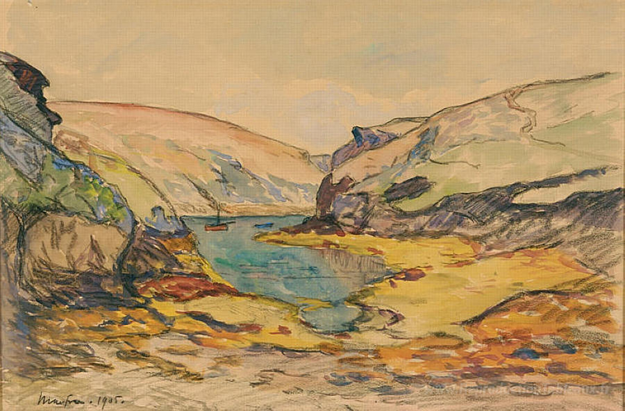 Nous vous proposons une reproduction artisanale sur toile du célèbre tableau 'La conque à Vieux-Chateau' de Maxime Maufra, provenant du Musée de la Reproduction.