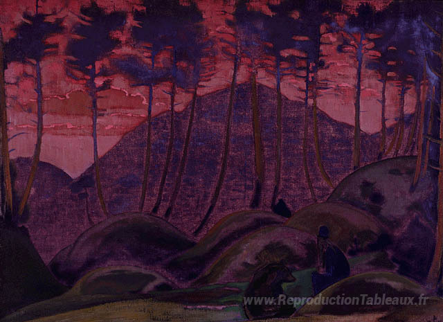 Nous vous proposons une reproduction artisanale sur toile du célèbre tableau 'La langue de la forêt' de Nicholas Roerich, provenant du Musée de la Reproduction.