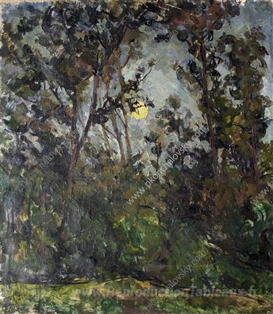 Nous vous proposons une reproduction artisanale sur toile du célèbre tableau 'La lune à travers les arbres' de Pyotr Konchalovsky, provenant du Musée de la Reproduction.