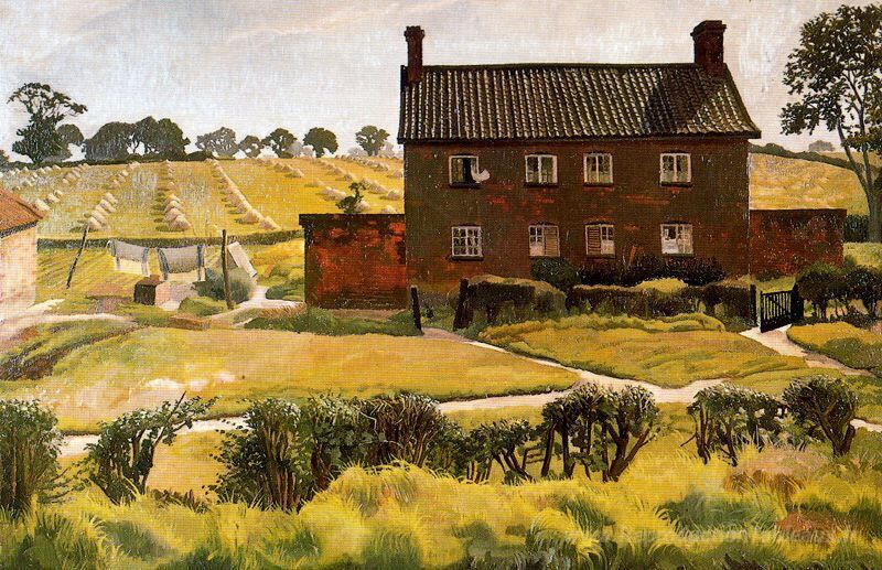 Nous vous proposons une reproduction artisanale sur toile du célèbre tableau 'La maison rouge. Wangford.' de Stanley Spencer, provenant du Musée de la Reproduction.