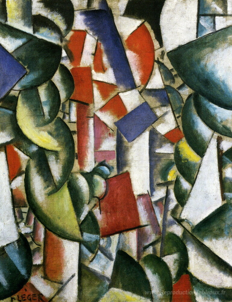 Nous vous proposons une reproduction artisanale sur toile du célèbre tableau 'La maison sous les arbres' de Fernand Leger, provenant du Musée de la Reproduction.