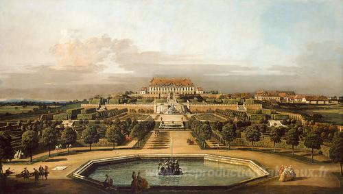 Nous vous proposons une reproduction artisanale sur toile du célèbre tableau 'La résidence d'été impériale, jardin' de Bernardo Bellotto, provenant du Musée de la Reproduction.
