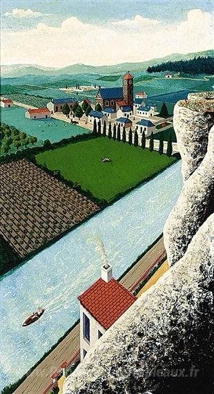 Nous vous proposons une reproduction artisanale sur toile du célèbre tableau 'La Rivière dans L'Ile de France' de Jules Lefranc, provenant du Musée de la Reproduction.