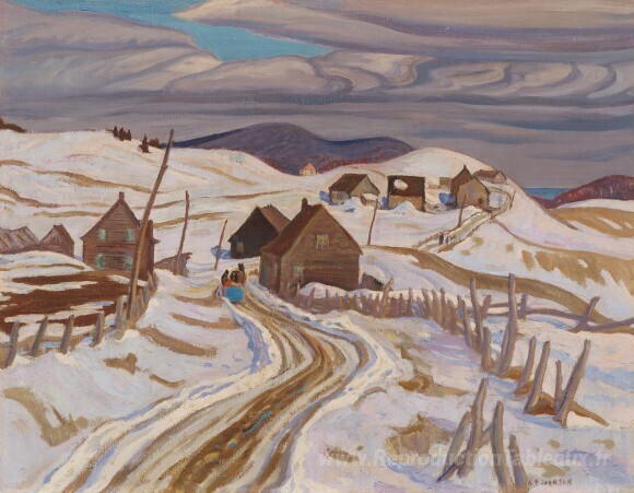 Nous vous proposons une reproduction artisanale sur toile du célèbre tableau 'La route de St. Fidele' de A.Y. Jackson, provenant du Musée de la Reproduction.