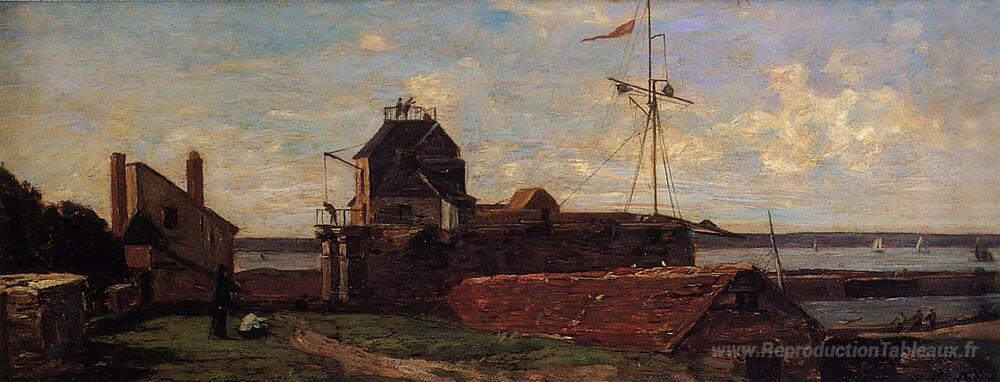 Nous vous proposons une reproduction artisanale sur toile du célèbre tableau 'La tour François Ier à Le Havre' de Eugene Boudin, provenant du Musée de la Reproduction.