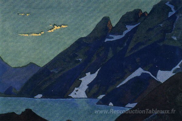 Nous vous proposons une reproduction artisanale sur toile du célèbre tableau 'Lac Nag. Cachemire.' de Nicholas Roerich, provenant du Musée de la Reproduction.