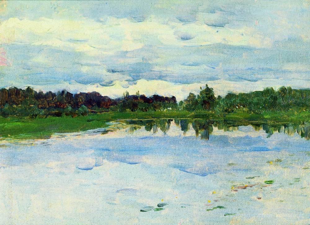Nous vous proposons une reproduction artisanale sur toile du célèbre tableau 'Lac' de Isaac Levitan, provenant du Musée de la Reproduction.