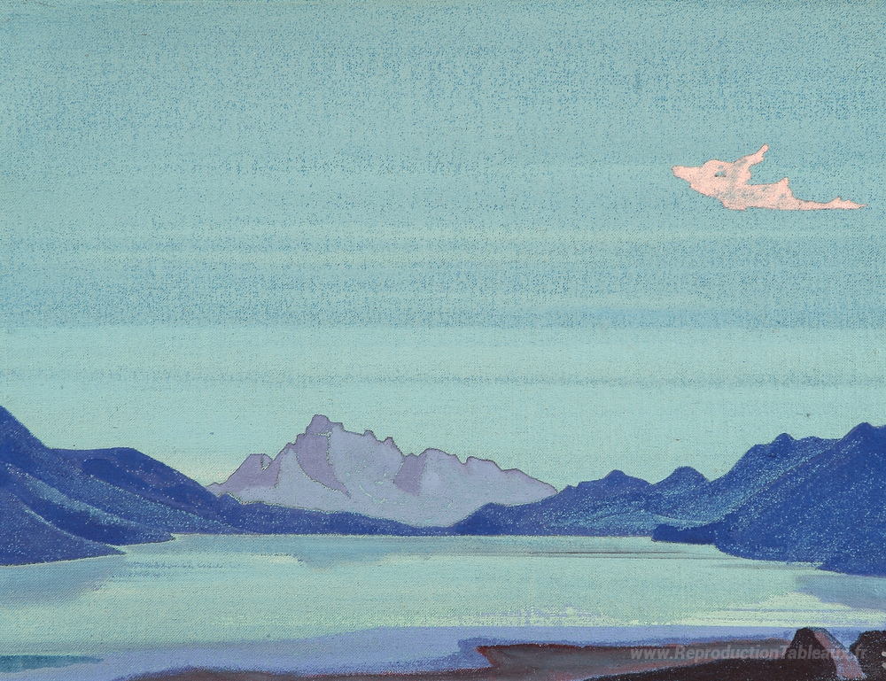 Nous vous proposons une reproduction artisanale sur toile du célèbre tableau 'Lacs tibétiens' de Nicholas Roerich, provenant du Musée de la Reproduction.