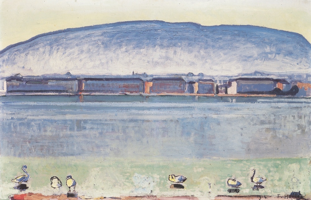 Nous vous proposons une reproduction artisanale sur toile du célèbre tableau 'Lake Léman avec six cygnes' de Ferdinand Hodler, provenant du Musée de la Reproduction.
