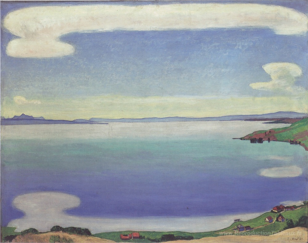 Nous vous proposons une reproduction artisanale sur toile du célèbre tableau 'LAKE LECEVA DE CHEXBRES' de Ferdinand Hodler, provenant du Musée de la Reproduction.