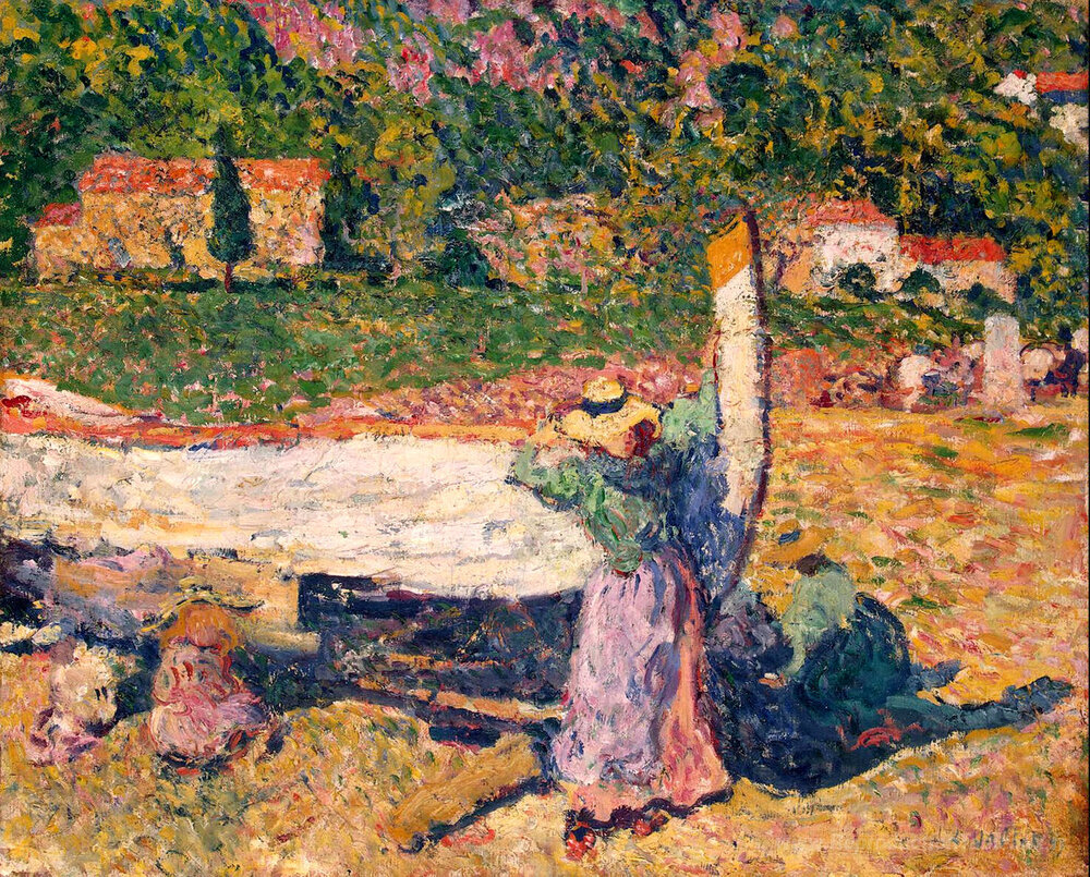Nous vous proposons une reproduction artisanale sur toile du célèbre tableau 'Le bateau' de Louis Valtat, provenant du Musée de la Reproduction.