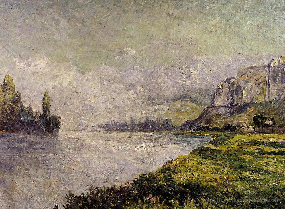Nous vous proposons une reproduction artisanale sur toile du célèbre tableau 'Le brouillard en retraite, le matin, les Andelys' de Maxime Maufra, provenant du Musée de la Reproduction.