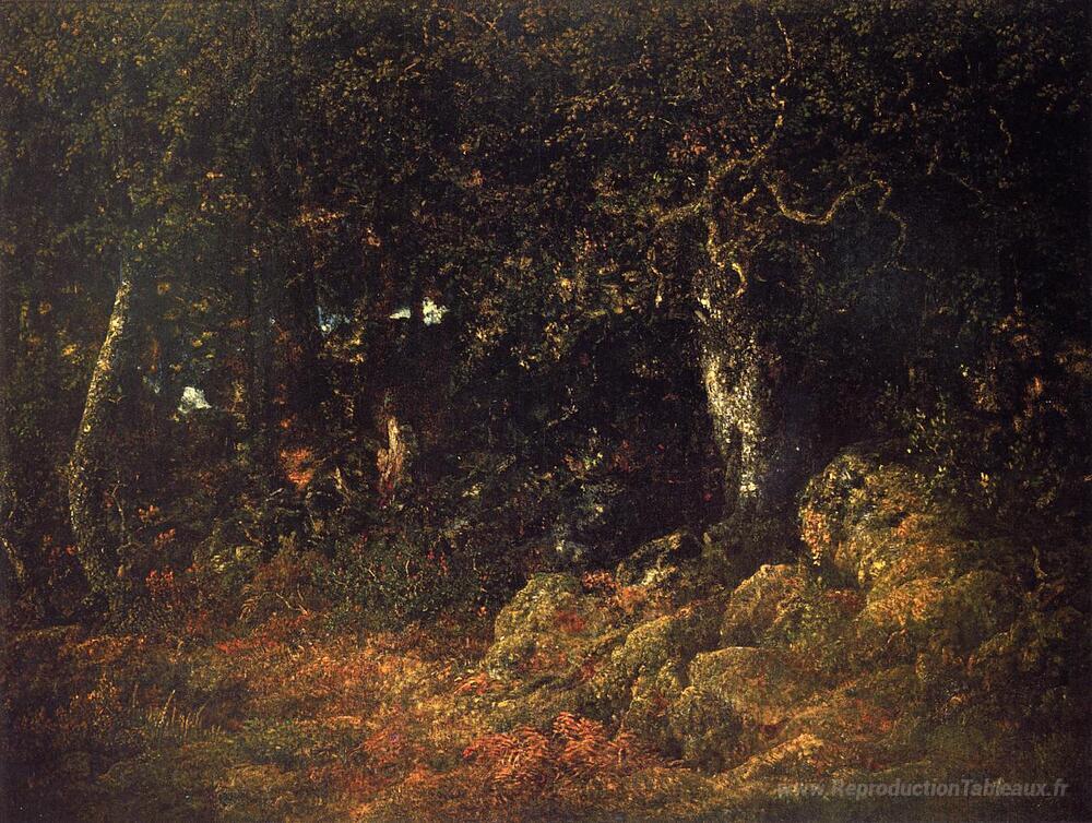 Nous vous proposons une reproduction artisanale sur toile du célèbre tableau 'Le chêne dans les rochers' de Theodore Rousseau, provenant du Musée de la Reproduction.
