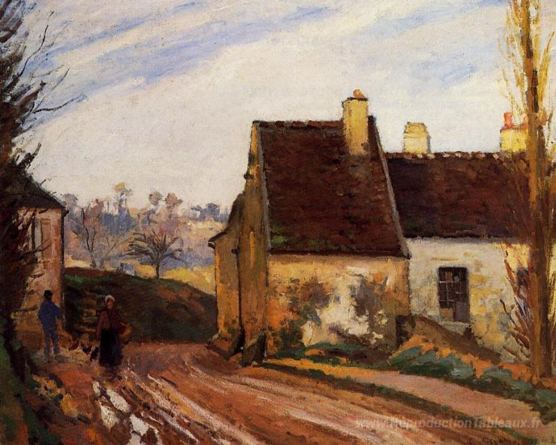 Nous vous proposons une reproduction artisanale sur toile du célèbre tableau 'Le chalet de Tumblown près d'Osny' de Camille Pissarro, provenant du Musée de la Reproduction.