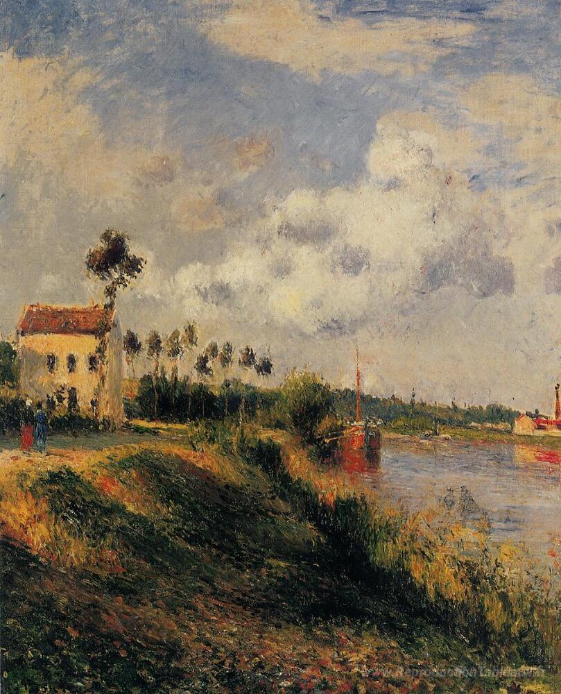 Nous vous proposons une reproduction artisanale sur toile du célèbre tableau 'Le chemin de Halage, Pontoise' de Camille Pissarro, provenant du Musée de la Reproduction.
