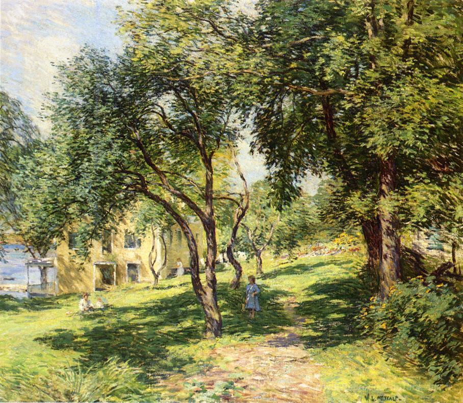 Nous vous proposons une reproduction artisanale sur toile du célèbre tableau 'Le chemin' de Willard Metcalf, provenant du Musée de la Reproduction.