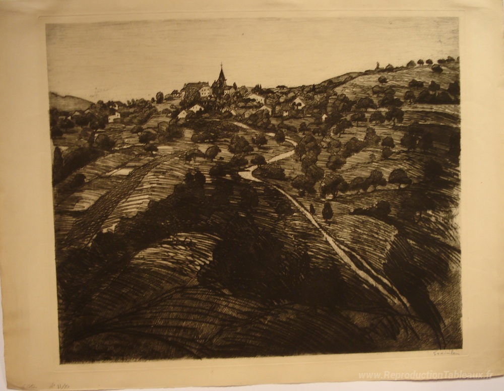 Nous vous proposons une reproduction artisanale sur toile du célèbre tableau 'Le Coteau' de Theophile Steinlen, provenant du Musée de la Reproduction.