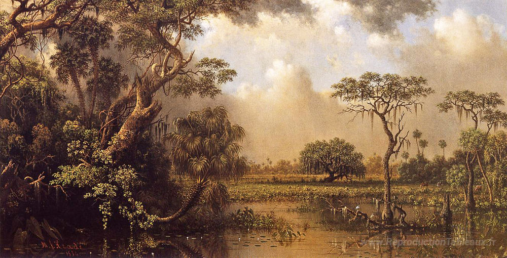Nous vous proposons une reproduction artisanale sur toile du célèbre tableau 'Le grand marais de Floride' de Martin Johnson Heade, provenant du Musée de la Reproduction.