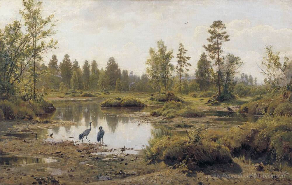 Nous vous proposons une reproduction artisanale sur toile du célèbre tableau 'Le marais. Polissie' de Ivan Shishkin, provenant du Musée de la Reproduction.