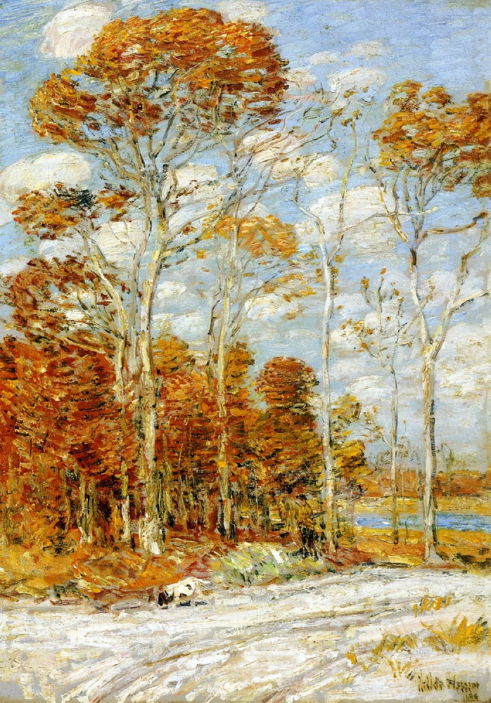 Nous vous proposons une reproduction artisanale sur toile du célèbre tableau 'Le nid du faucon' de Childe Hassam, provenant du Musée de la Reproduction.