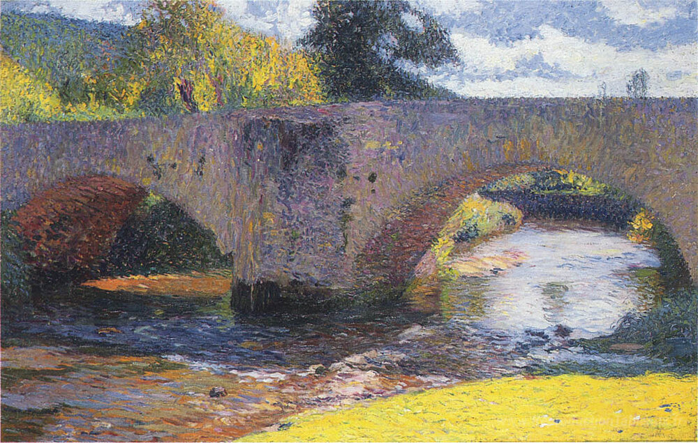 Nous vous proposons une reproduction artisanale sur toile du célèbre tableau 'Le pont à Labastide du Vert' de Henri Martin, provenant du Musée de la Reproduction.
