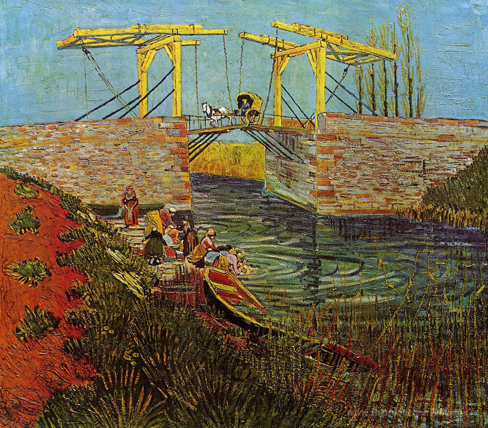 Nous vous proposons une reproduction artisanale sur toile du célèbre tableau 'Le pont Langlois à Arles' de Vincent van Gogh, provenant du Musée de la Reproduction.