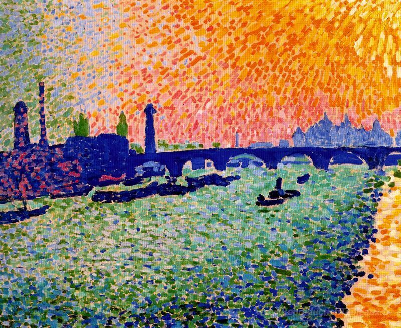 Nous vous proposons une reproduction artisanale sur toile du célèbre tableau 'Le pont, vue sur la rivière' de Andre Derain, provenant du Musée de la Reproduction.