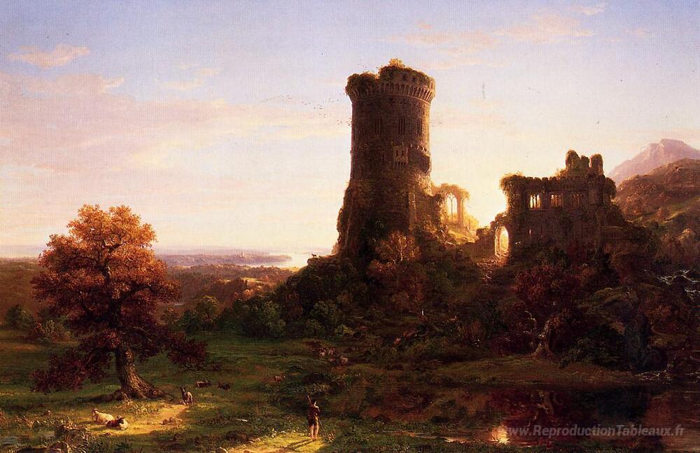 Nous vous proposons une reproduction artisanale sur toile du célèbre tableau 'Le présent' de Thomas Cole, provenant du Musée de la Reproduction.