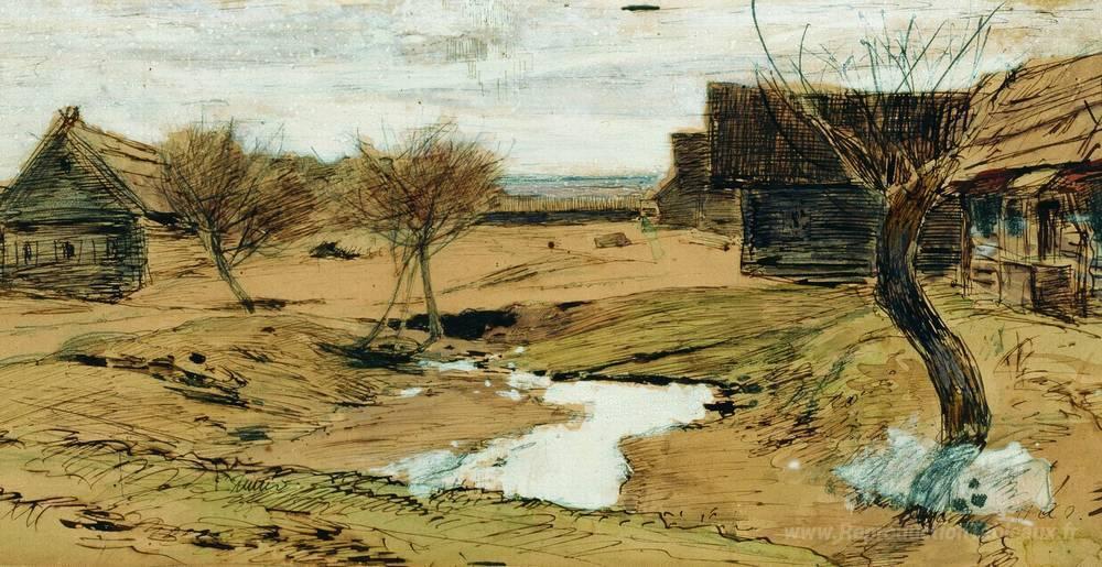 Nous vous proposons une reproduction artisanale sur toile du célèbre tableau 'Le printemps est arrivé' de Isaac Levitan, provenant du Musée de la Reproduction.