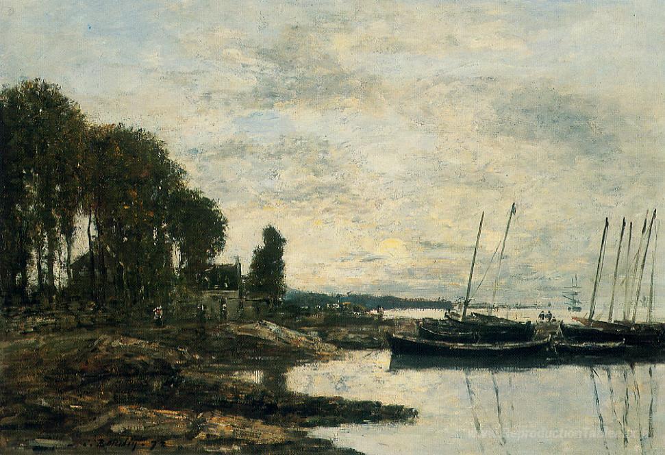 Nous vous proposons une reproduction artisanale sur toile du célèbre tableau 'Le rivage à Plougastel' de Eugene Boudin, provenant du Musée de la Reproduction.