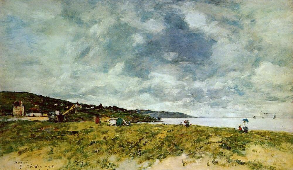 Nous vous proposons une reproduction artisanale sur toile du célèbre tableau 'Le rivage à Tourgeville' de Eugene Boudin, provenant du Musée de la Reproduction.