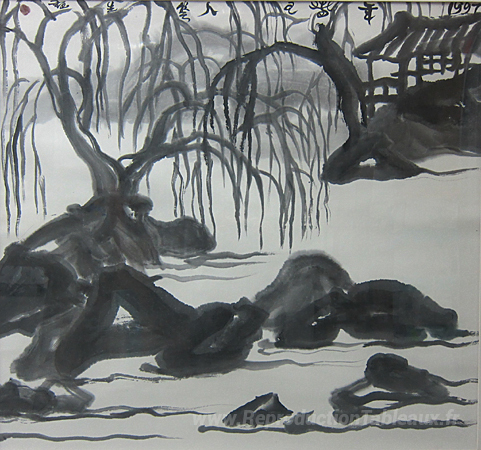 Nous vous proposons une reproduction artisanale sur toile du célèbre tableau 'Le saule en hiver' de Li Huasheng, provenant du Musée de la Reproduction.