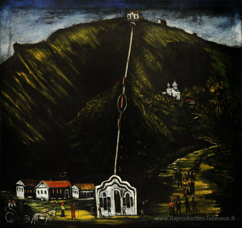 Nous vous proposons une reproduction artisanale sur toile du célèbre tableau 'Le Tiflis Funicular' de Niko Pirosmani, provenant du Musée de la Reproduction.