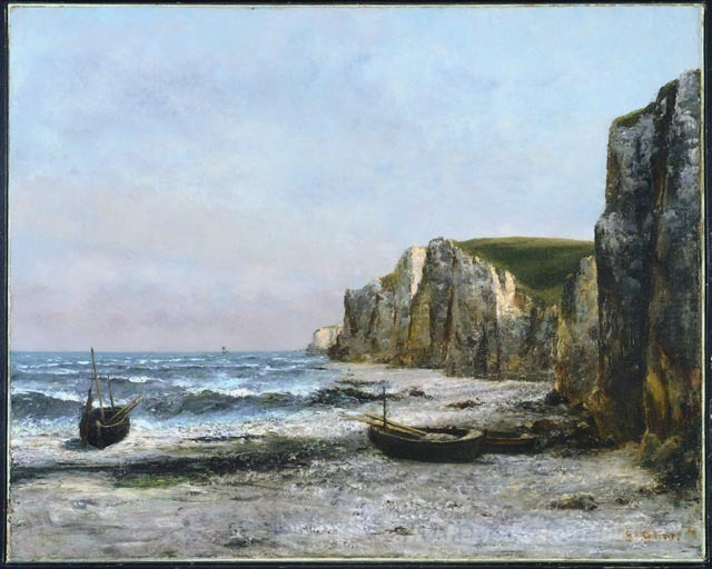 Nous vous proposons une reproduction artisanale sur toile du célèbre tableau 'Les falaises à l'étére' de Gustave Courbet, provenant du Musée de la Reproduction.