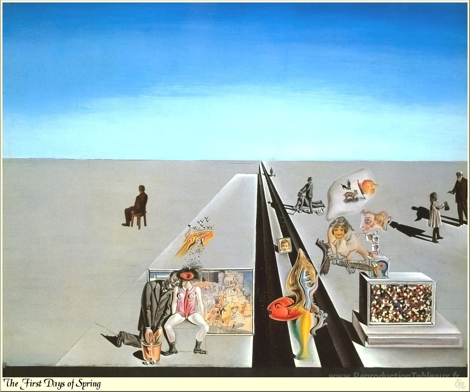 Nous vous proposons une reproduction artisanale sur toile du célèbre tableau 'Les premiers jours du printemps' de Salvador Dali, provenant du Musée de la Reproduction.