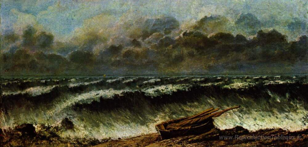 Nous vous proposons une reproduction artisanale sur toile du célèbre tableau 'Les vagues' de Gustave Courbet, provenant du Musée de la Reproduction.