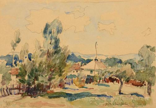 Nous vous proposons une reproduction artisanale sur toile du célèbre tableau 'Limite du village' de Adam Baltatu, provenant du Musée de la Reproduction.
