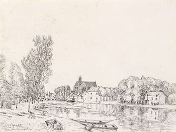 Nous vous proposons une reproduction artisanale sur toile du célèbre tableau 'Loing a Moret' de Alfred Sisley, provenant du Musée de la Reproduction.