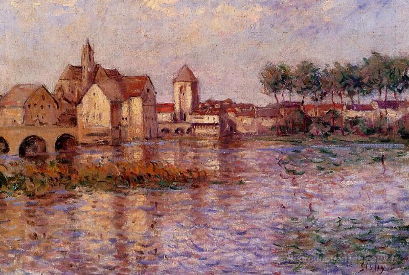 Nous vous proposons une reproduction artisanale sur toile du célèbre tableau 'Loing a Moret' de Alfred Sisley, provenant du Musée de la Reproduction.