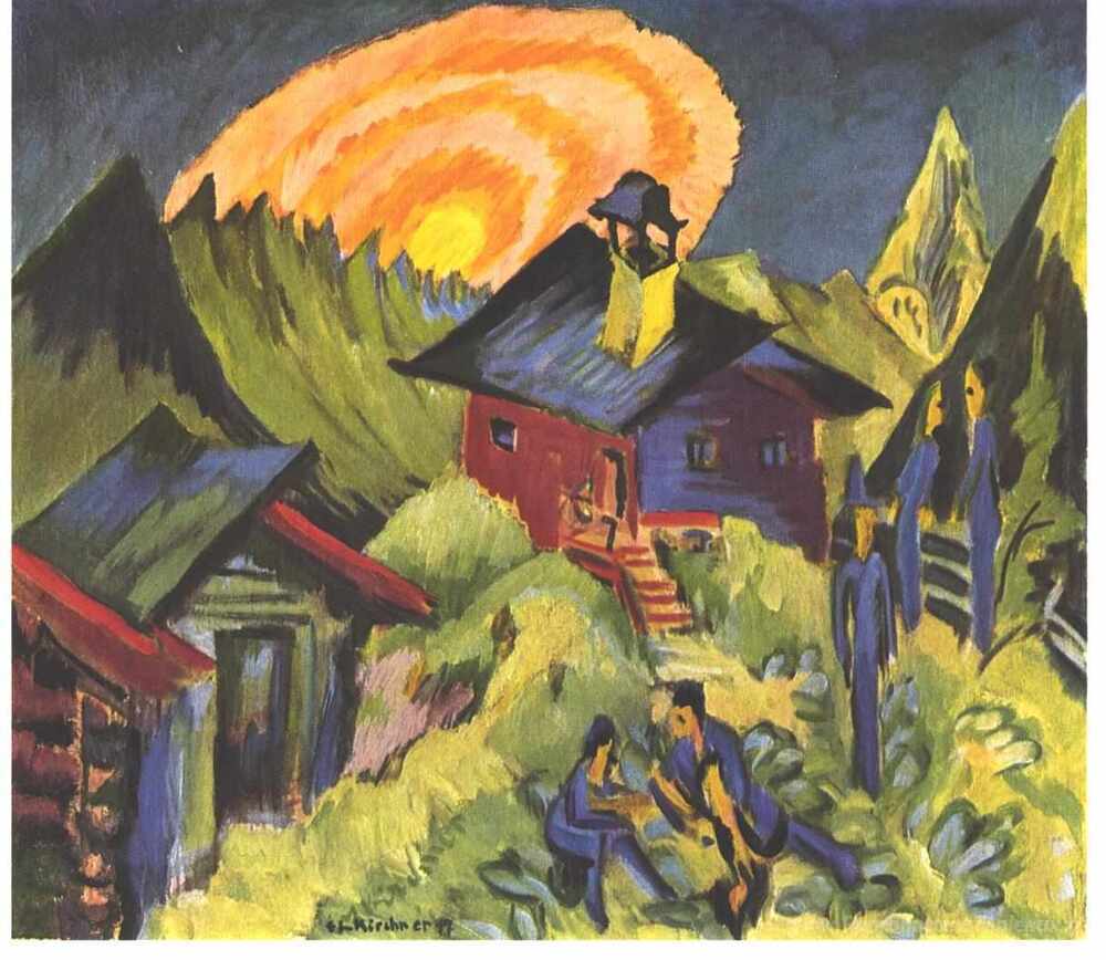 Nous vous proposons une reproduction artisanale sur toile du célèbre tableau 'Lune se levant au Staffelalp' de Ernst Ludwig Kirchner, provenant du Musée de la Reproduction.