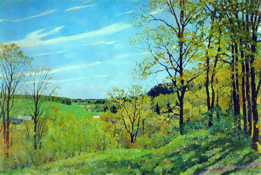 Nous vous proposons une reproduction artisanale sur toile du célèbre tableau 'Mai matin. Nightingale Place. Ligachevo' de Konstantin Yuon, provenant du Musée de la Reproduction.