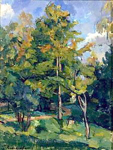 Nous vous proposons une reproduction artisanale sur toile du célèbre tableau 'Maples jaunissant' de Pyotr Konchalovsky, provenant du Musée de la Reproduction.