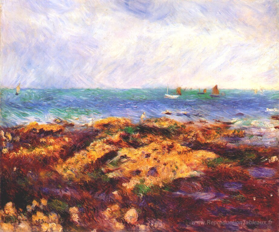 Nous vous proposons une reproduction artisanale sur toile du célèbre tableau 'Marée basse à yport' de Pierre-Auguste Renoir, provenant du Musée de la Reproduction.