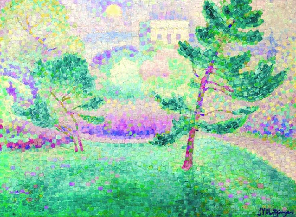 Nous vous proposons une reproduction artisanale sur toile du célèbre tableau 'Matin au Parc Monttsouris' de Jean Metzinger, provenant du Musée de la Reproduction.