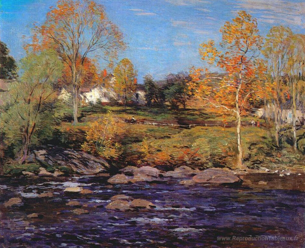 Nous vous proposons une reproduction artisanale sur toile du célèbre tableau 'Matin d'octobre (n ° 1)' de Willard Metcalf, provenant du Musée de la Reproduction.