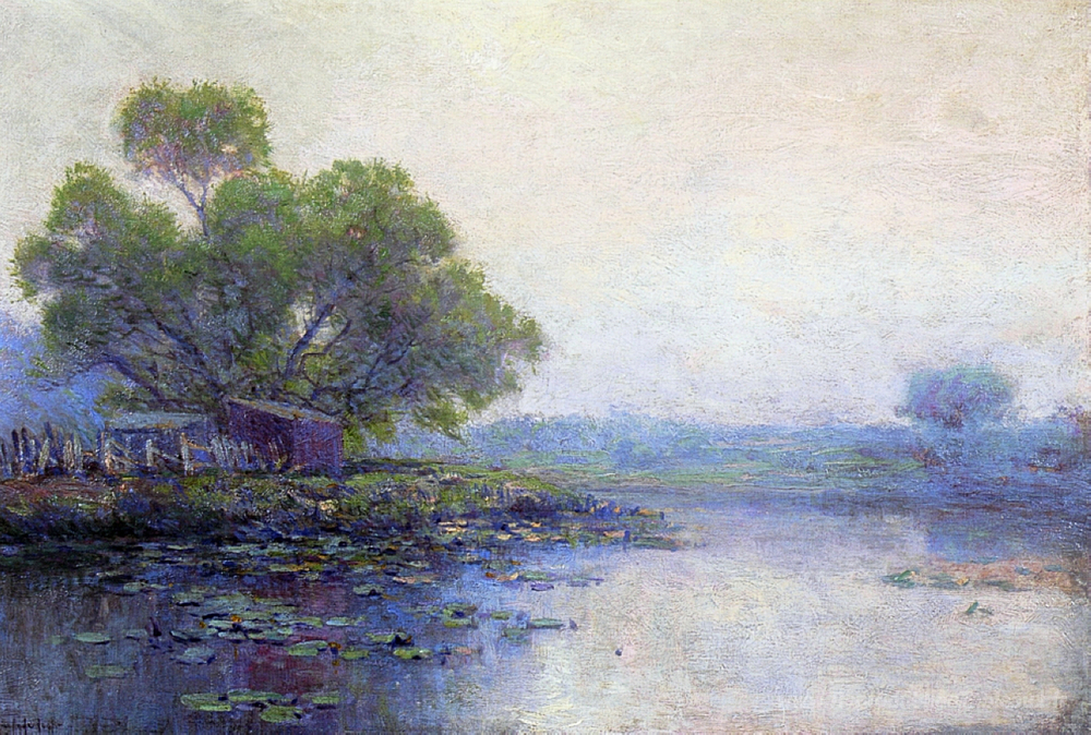 Nous vous proposons une reproduction artisanale sur toile du célèbre tableau 'Matin sur l'étang' de Robert Julian Onderdonk, provenant du Musée de la Reproduction.