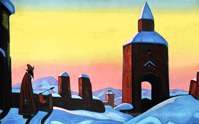 Nous vous proposons une reproduction artisanale sur toile du célèbre tableau 'Message à Tiron' de Nicholas Roerich, provenant du Musée de la Reproduction.