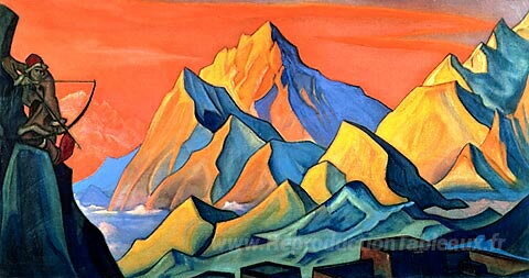 Nous vous proposons une reproduction artisanale sur toile du célèbre tableau 'Message de Shambhala (lettre de flèche)' de Nicholas Roerich, provenant du Musée de la Reproduction.