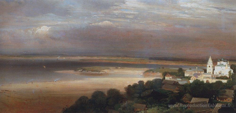 Nous vous proposons une reproduction artisanale sur toile du célèbre tableau 'Monastère des grottes près de Nizhny Novgorod' de Aleksey Savrasov, provenant du Musée de la Reproduction.