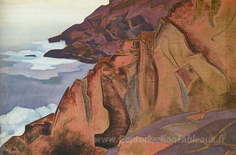 Nous vous proposons une reproduction artisanale sur toile du célèbre tableau 'Monhegan (création)' de Nicholas Roerich, provenant du Musée de la Reproduction.